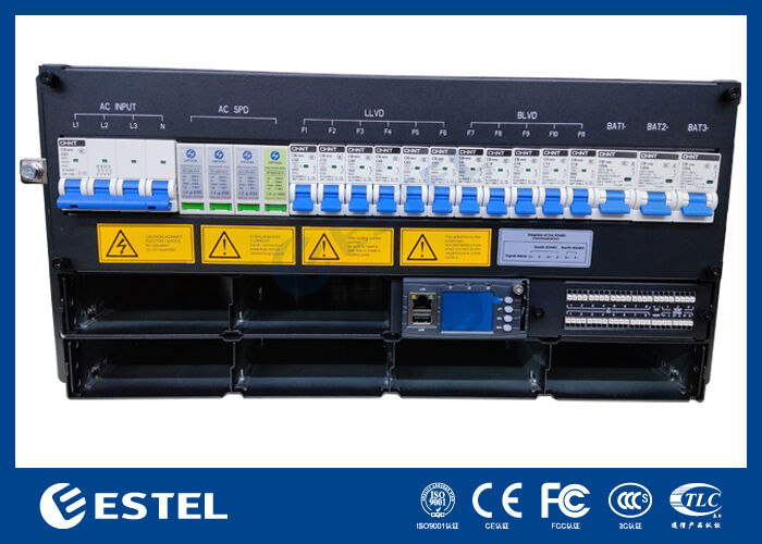 ডিসি বিতরণ প্যানেলটি 3*125A/1P ব্যাটারি সার্কিট ব্রেকার দিয়ে সজ্জিত এবং নিরাপদ এবং নমনীয় পাওয়ার ব্যবস্থাপনার জন্য একটি LLVD এবং একটি BLVD কার্যকারিতা অন্তর্ভুক্ত করে। সিস্টেমের বুদ্ধিমত্তা একটি ডেডিকেটেড কন্ট্রোলার দ্বারা সরবরাহ করা হয় যাতে 4টি অ্যানালগ সেন্সর ইনপুট, 8টি ডিজিটাল স্ট্যাটাস ইনপুট এবং 8টি কনফিগারযোগ্য ড্রাই-কন্টাক্ট অ্যালার্ম রিলে রয়েছে। RS232/485 এবং SNMP ইন্টারফেসের মাধ্যমে রিমোট মনিটরিং এবং ম্যানেজমেন্ট সক্ষম করা হয়েছে, যেখানে একটি সমন্বিত LCD ডিসপ্লে স্থানীয় স্ট্যাটাস দেখা এবং কনফিগারেশনের অনুমতি দেয়।
